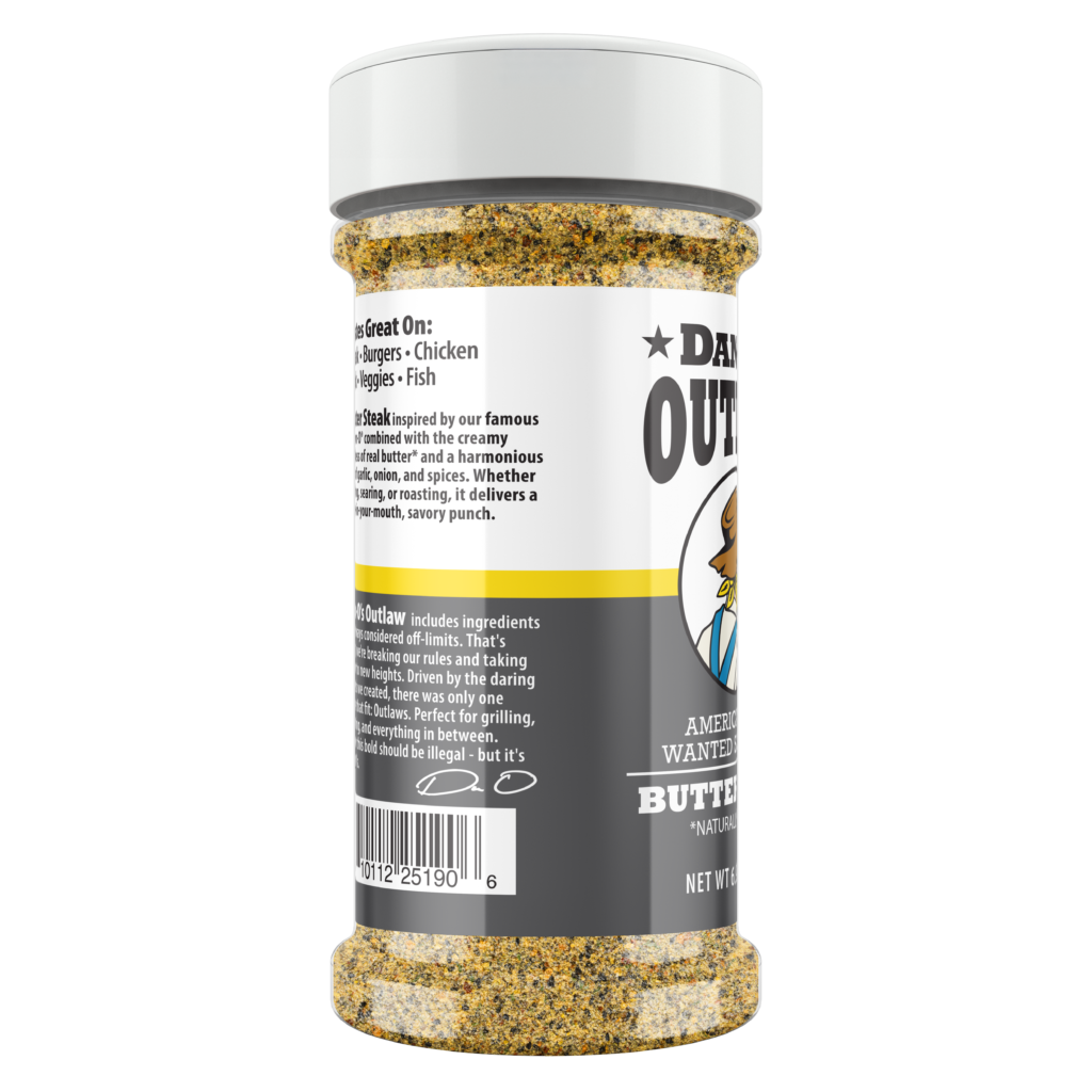 Dan-O’s Outlaw Butter Steak ain’t your average steak seasoning—it’s an Outlaw. Ridin’ in with our legendary Preem-O®-like punch and the creamy richness of real butter, garlic, onion, and herbs… this blend is fixin’ to turn your next meal into a full-blown flavor stampede. Perfect for steak, burgers, chicken, and even veggies—they’re all invited to the flavor rodeo! Dan-O’s Outlaw Butter Steak delivers that melt-in-your-mouth flavor that’ll make you wanna shout “Yum Yum Get Ya Sum!”