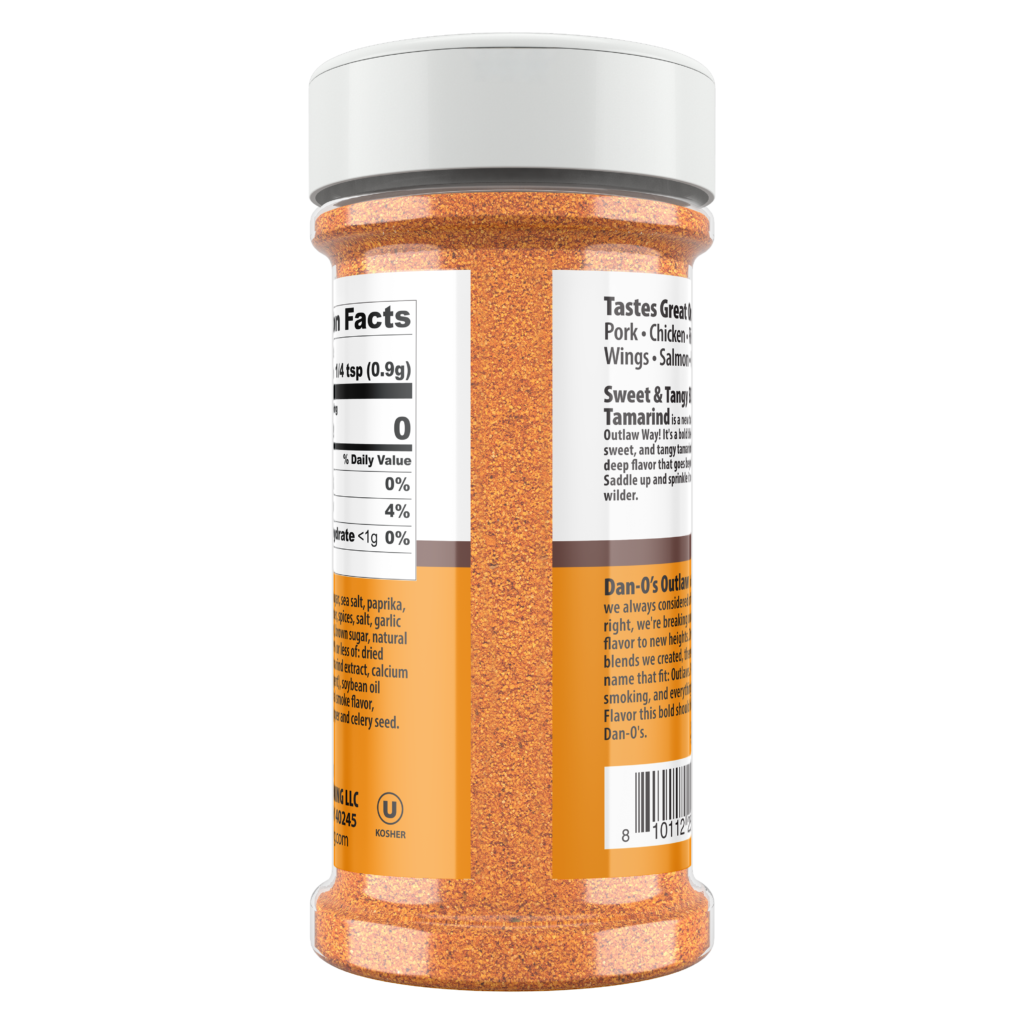 Dan-O’s® Outlaw Sweet & Tangy BBQ with Tamarind is a new twist on BBQ, the Outlaw Way! It’s a bold blend of smoky, sweet, and tangy tamarind, bringing a rich, deep flavor that goes beyond the ordinary. Saddle up and sprinkle it on – BBQ just got wilder.